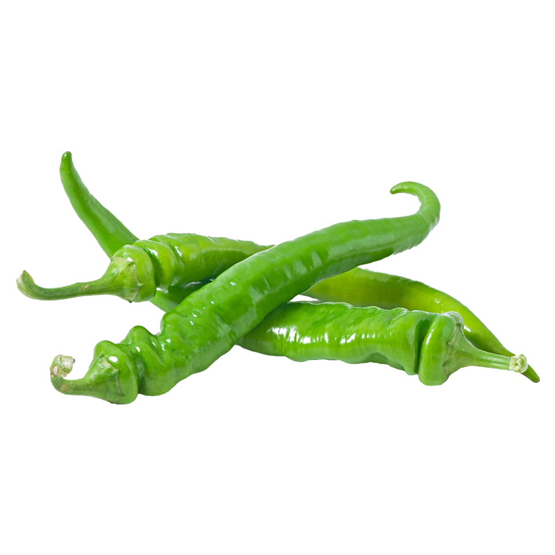 These fresh green chili peppers are perfect for adding a touch of spice to your dishes. They have a bright green color and a slightly spicy flavor.